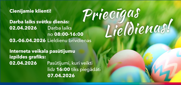02.04.2026 Pasūtījumi, kuri veikti līdz 16:00 tiks piegādāti 07.04.2026